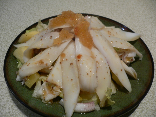 川燙過後冰鎮的花枝佐酸酸的水果醋很清脆爽口