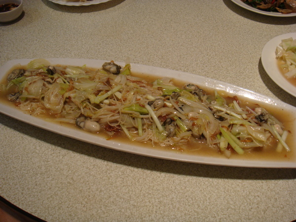 超過50公分的長盤上滿滿的麵線 以及粒粒飽滿的鮮蚵