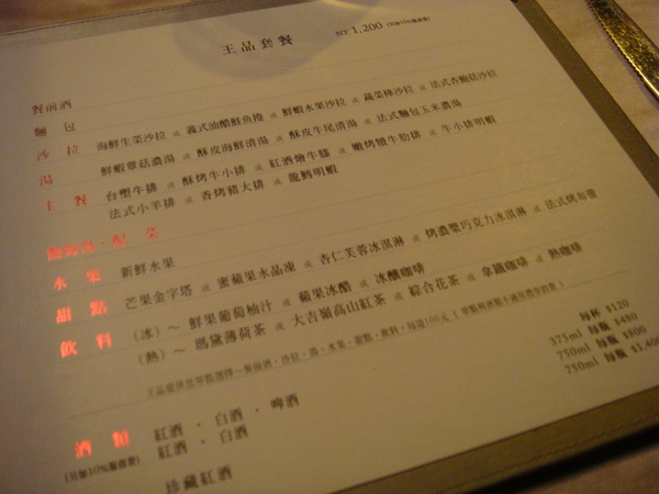 MENU~王品套餐均一價NT1200 +10% (刷花旗饗樂卡可以打9折~^^)