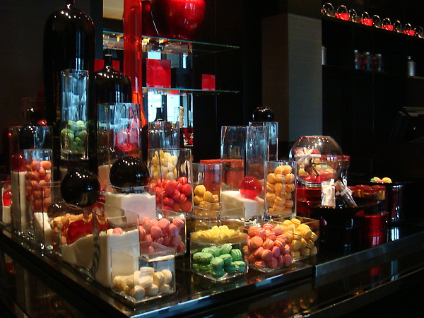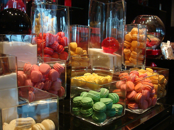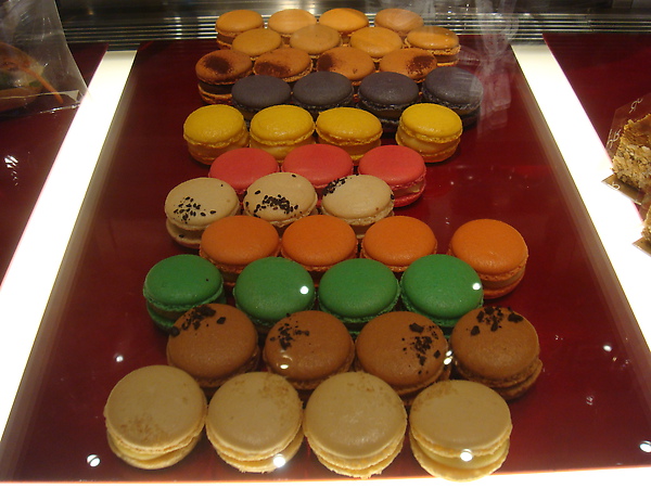 抬頭看吧台上頭點綴著五顏六色的馬卡龍