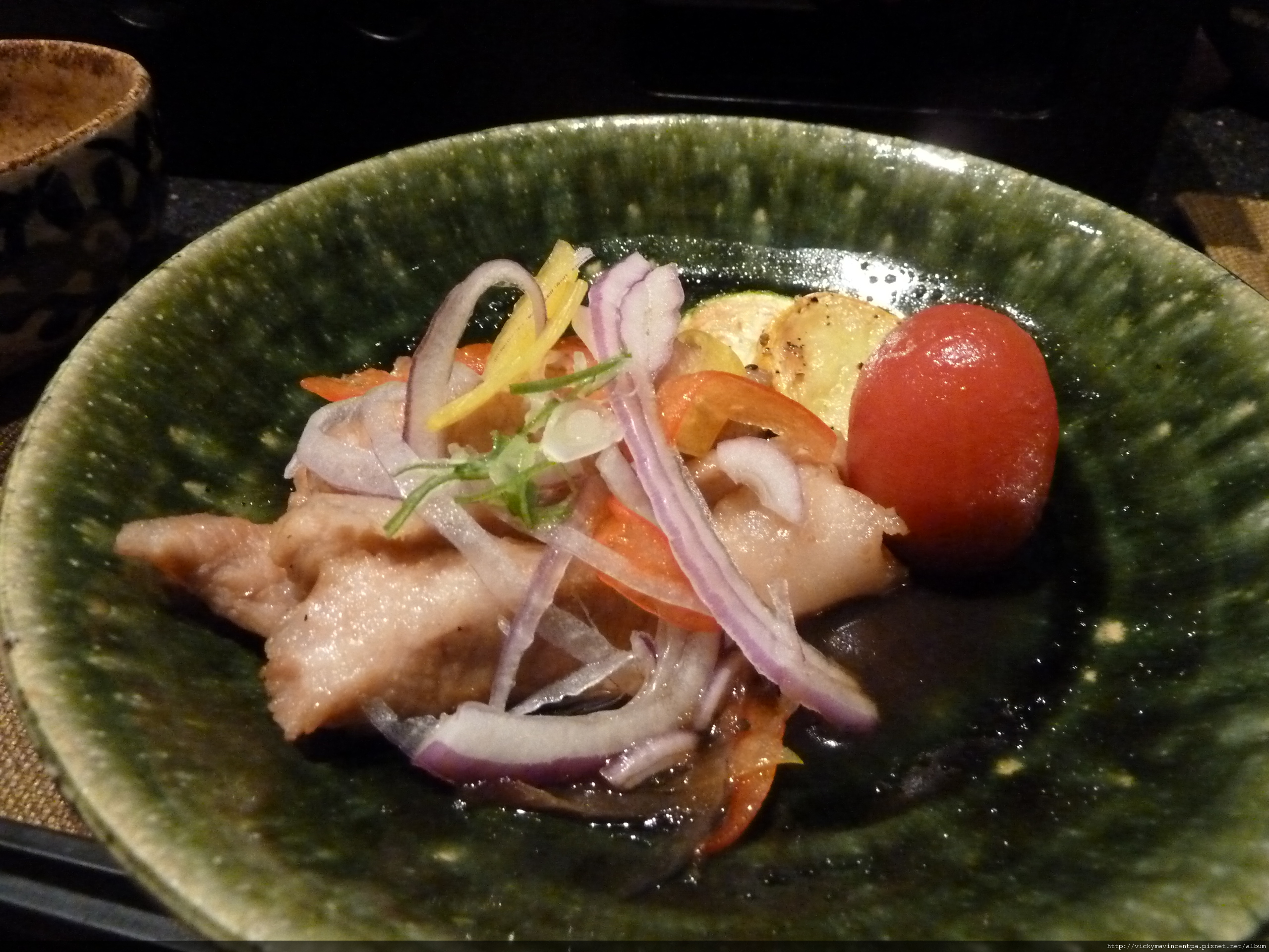 鹽烤的不知名鮮嫩魚肉連微焦微脆的魚皮一起沾點橘醋品嚐~~~是大海的鮮甜美味!!
