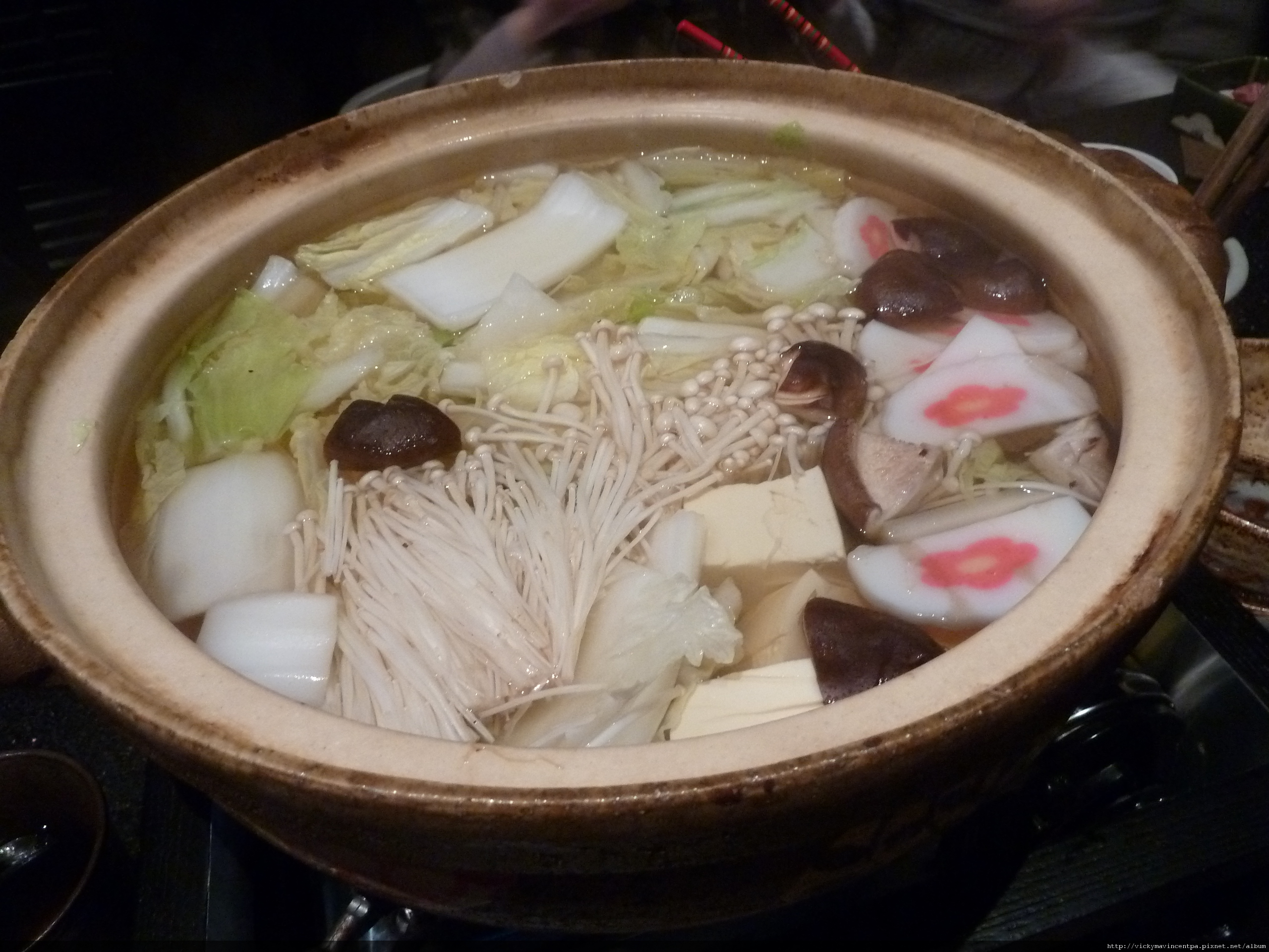 清徹的高湯底 上頭鋪滿了新鮮的食蔬