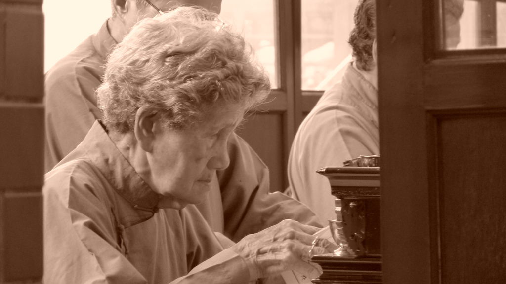 一位白髮蒼蒼的老婆婆吸引我的目光