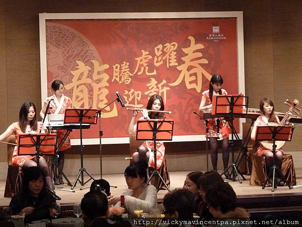 五個樂手們穿上改良式紅旗袍也顯得喜氣洋洋
