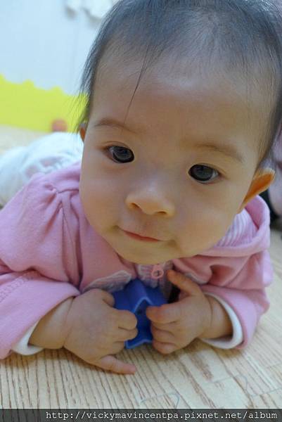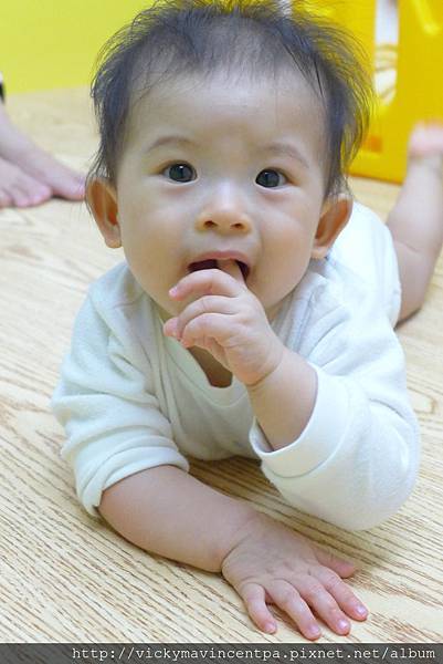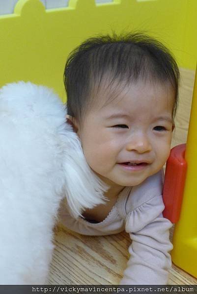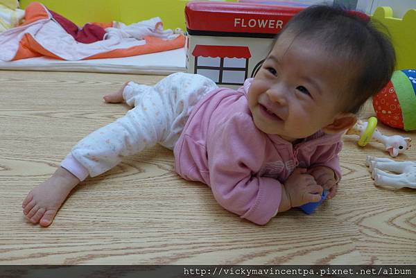 3/11 今天小蘇菲終於學會爬爬囉!! 爬一段就會回頭看麻咪 然後給個得意的笑 ^0^