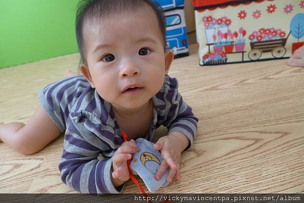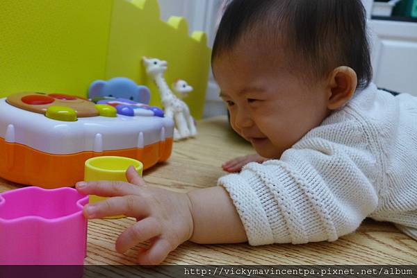 3/12 這小子爬不膩耶 ㄎㄎ 現在相中的玩具大概10秒內能到手