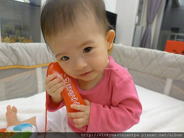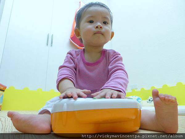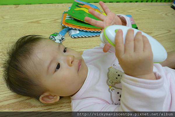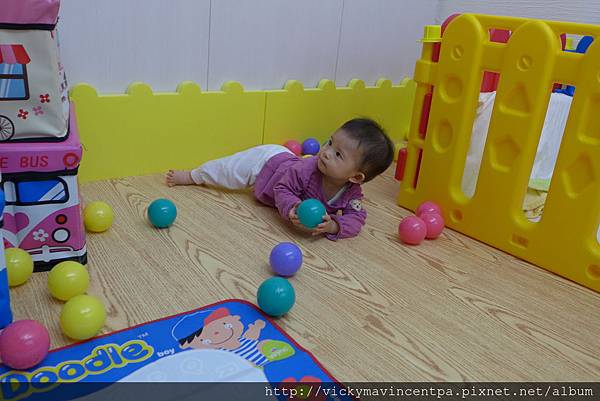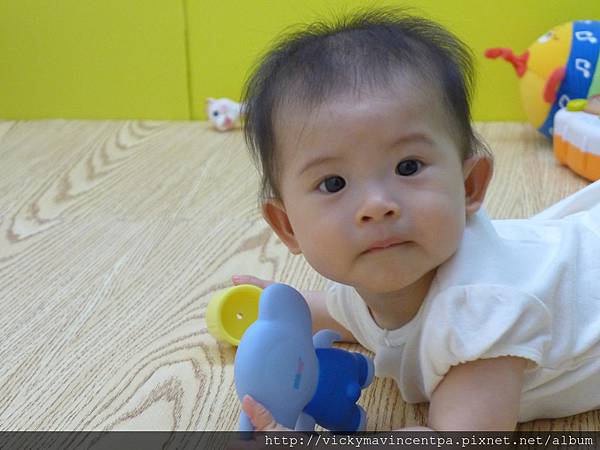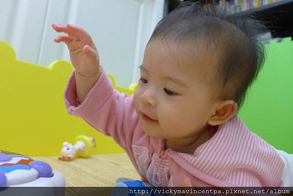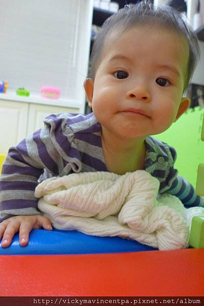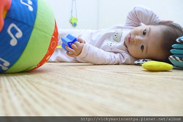 3/13 現在在遊戲床也能很安份的坐著玩玩具 真乖~