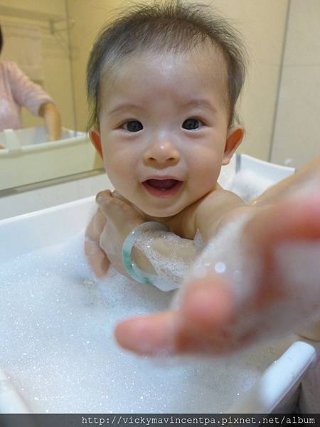3/18 小蘇菲現在洗泡泡浴都好開心呀 有泡又有玩 ^^