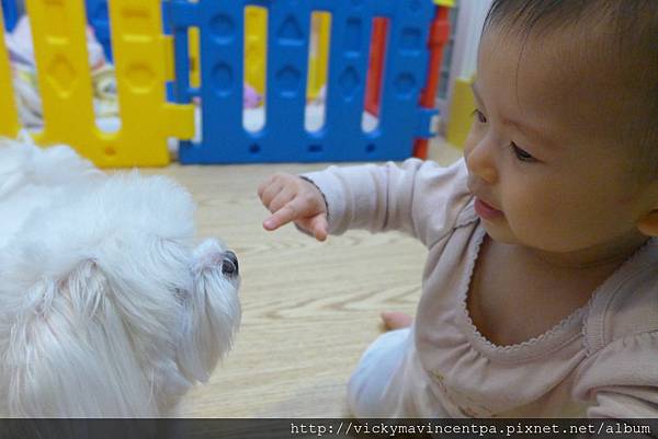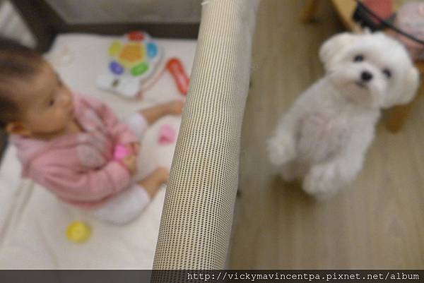 3/26 自從遊戲床搬到客廳後 小蘇菲與小毛頭的互動就變多喏