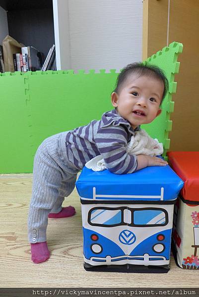 4/8 小蘇菲這陣子爬一爬遇到小整理箱就會想試著站起來
