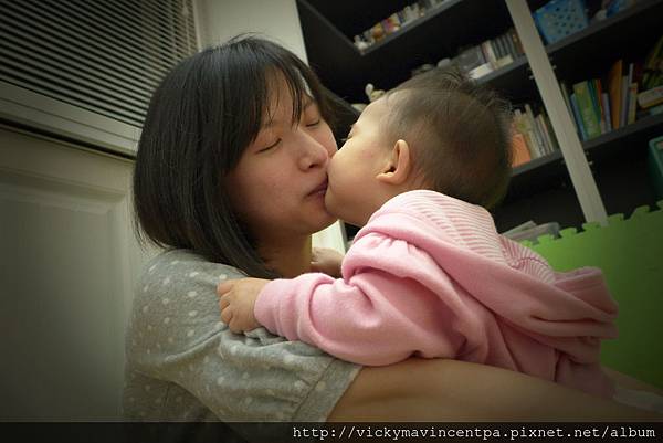 4/24 只要麻麻說:鴨媽媽給她的孩子們睡前親親 小蘇菲的嘴就會嘟上去給麻咪一個香吻兒