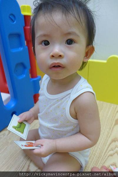 7/6 今天是拔拔的保姆日(麻麻的雪拼日) 小蘇菲首先很乖的自己玩卡片配對的遊戲 全部都會配對耶!!