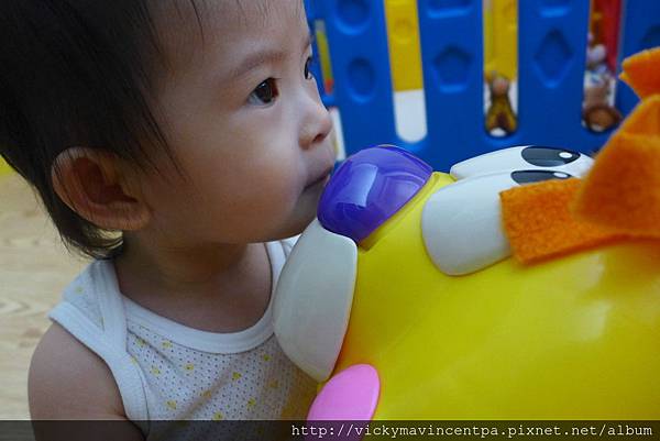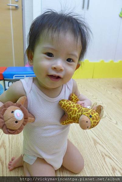7/20 小蘇菲一次就愛上的玩具是這隻獅子 這次完全沒哭哭 還馬上就給獅子一個親親