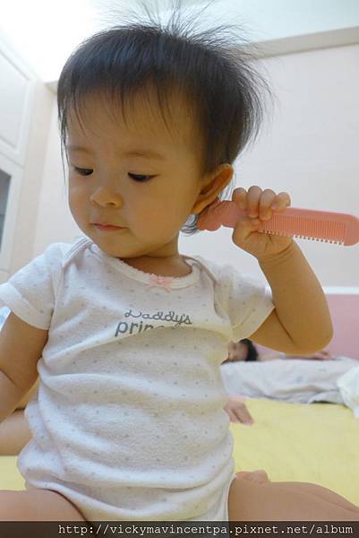 7/1 睡前麻麻幫我把頭梳好之後 梳子立馬變成我的玩具 我可以玩上很久滴~