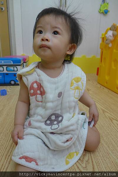 7/21 午睡前要拔比幫我穿上這身蘑菇裝 然後我又玩了好一會兒才捨不得去睡搞搞