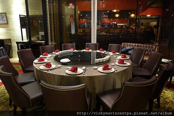 餐巾還摺成一朵朵紅玫瑰模樣 很是討喜~!!