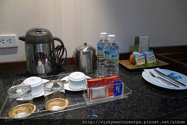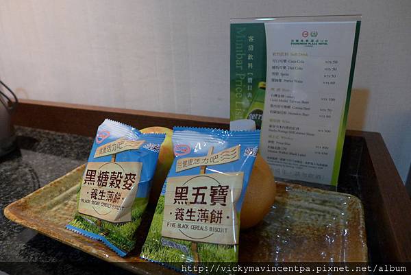 除了一般飯店提供的免費茶包之外 這兒還多了兩包養生薄餅(還不錯吃耶~)