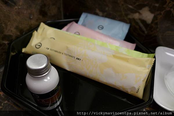 飯店簡單提供的備品 牙刷 肥皂 浴帽...等