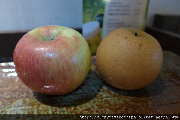 迎賓水果則是偷偷藏在餅乾後面 是一顆小蘋果和一顆小梨子