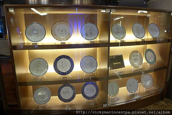 裡頭擺著入住過台糖長榮酒店的明星或是政商名流的簽名盤子