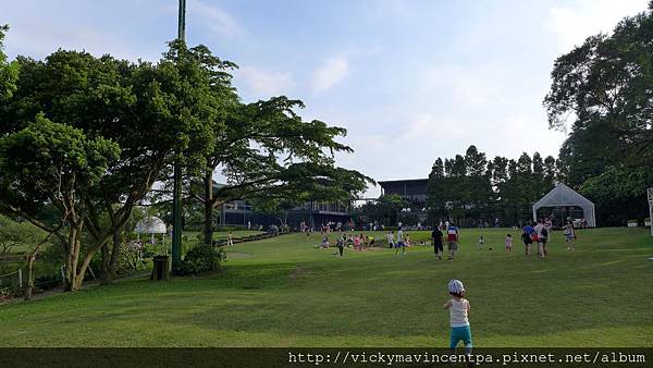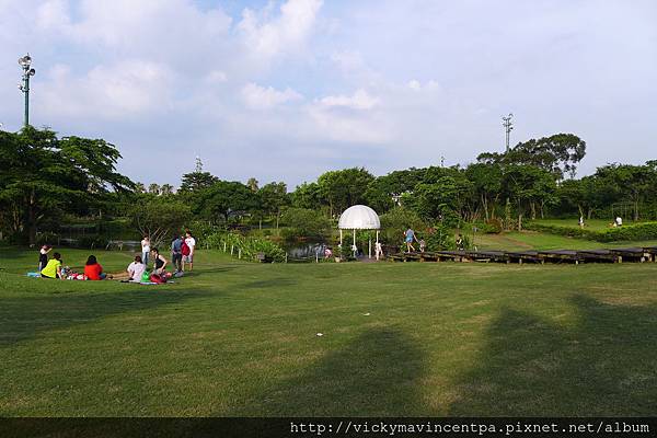 See~這一家子就這樣席地而坐 享受這半自然的藍天綠地很是愜意